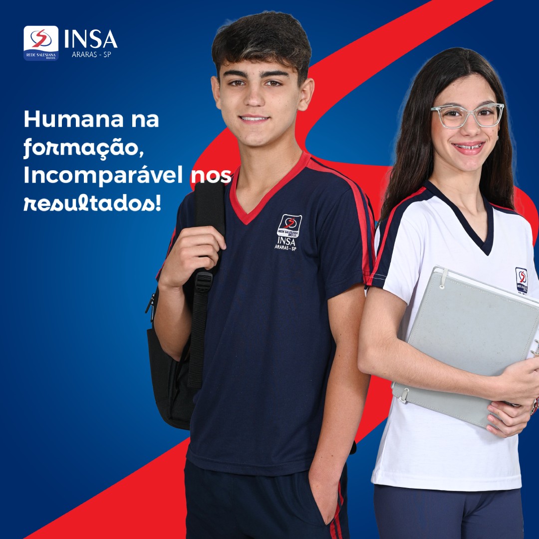 Com mais de 129 anos de tradição, o INSA de Araras transforma educação em uma experiência para a vida. Inspirado nos valores salesianos, oferecemos um ensino integral que vai além da sala de aula, cuidando do desenvolvimento físico, emocional, cognitivo e espiritual de cada aluno. Da Educação Infantil ao Ensino Médio, valorizamos o protagonismo estudantil e a vivência de valores cristãos, criando um ambiente acolhedor e parceiro das famílias. Aqui, formamos cidadãos preparados para o futuro.