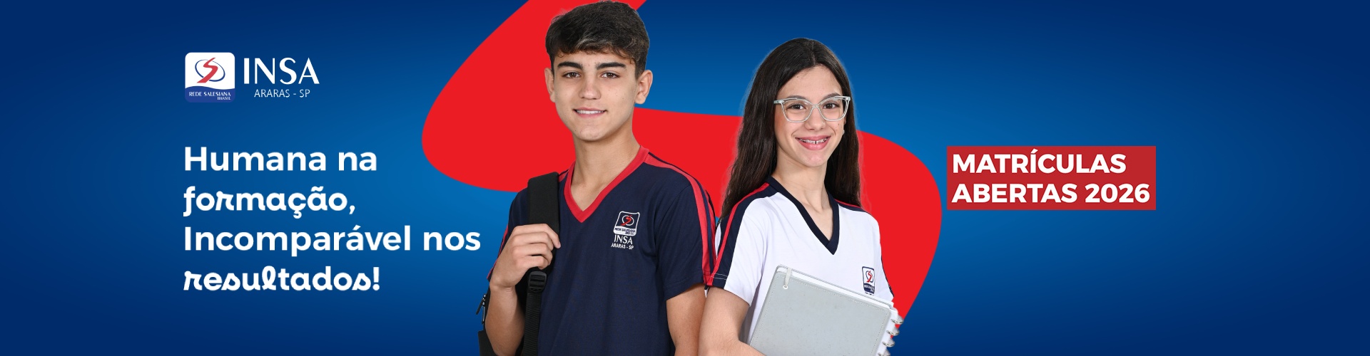 Com mais de 129 anos de tradição, o INSA de Araras transforma educação em uma experiência para a vida. Inspirado nos valores salesianos, oferecemos um ensino integral que vai além da sala de aula, cuidando do desenvolvimento físico, emocional, cognitivo e espiritual de cada aluno. Da Educação Infantil ao Ensino Médio, valorizamos o protagonismo estudantil e a vivência de valores cristãos, criando um ambiente acolhedor e parceiro das famílias. Aqui, formamos cidadãos preparados para o futuro.